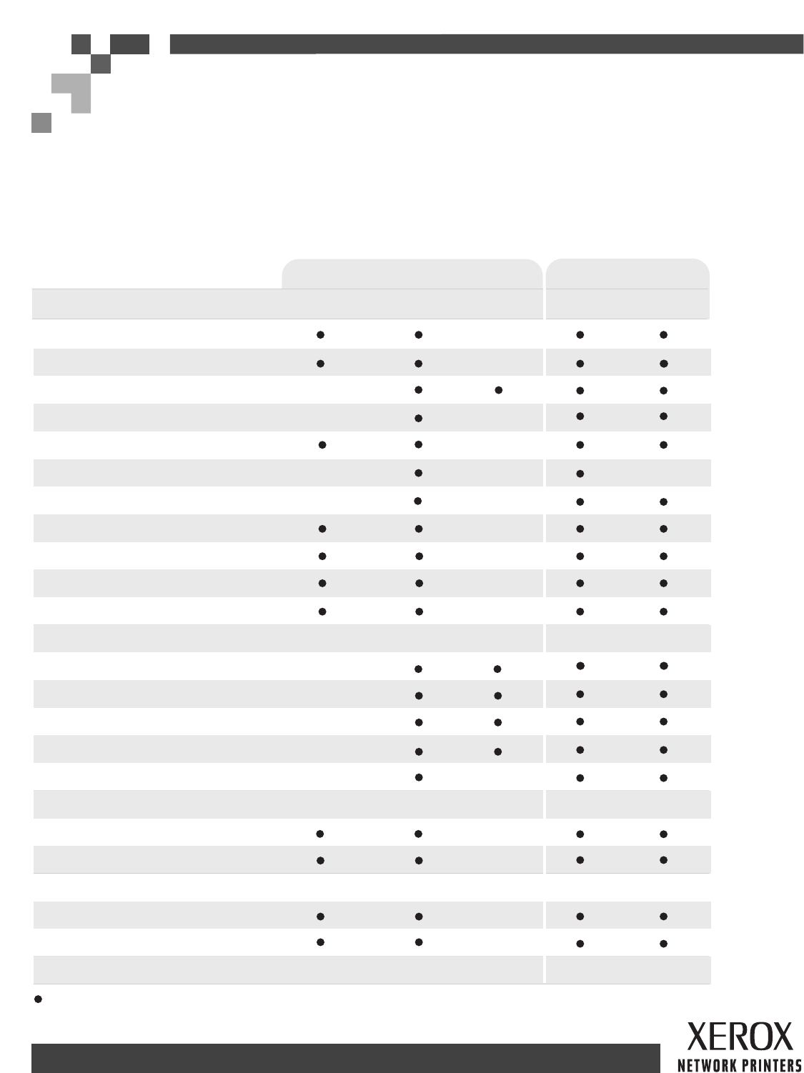 Refer to the following tables to ensure the best print-quality and to avoid paper jams. For best results, use Xerox-branded paper as it is