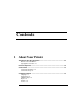 Contents 1 About Your Printer Standard Product Documentation ................................................................. 1-2 Manuals on the CD-ROM 1-2 Typographic Conventions 1-3 Printer Components ........................................................................................ 1-4 Control Panel ................................................................................................... 1-5 Control Panel Indicators 1-5 Control Panel Keys 1-6 Configuration Menu ......................