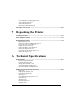 Toner Smudges, Residual Images 6-33 Uneven Print Density 6-34 Vertical Streaking 6-34 Dashed Lines Not Printing 6-35 Placing a Service Call ..................................................................................6-35 7 Repacking the Printer Storing the Printer ...........................................................................................7-2 Relocating the Printer .....................................................................................7-3 Repacking the Printer .........