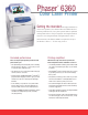 Phaser® 6360 Call today. For more information, call 1-877-362-6567 or visit us at www.xerox.com/office Phaser 6360N Phaser 6360DN Phaser 6360DT Up to 42 ppm color / 42 ppm black-and-white Speed 100,000 pages / month* Duty Cycle Paper Handling Paper input Standard Phaser 6360DX Tray 1 (MPT): 150 sheets; Selectable sizes: 3.5 x 5.5 in. to 8.5 x 36 in.