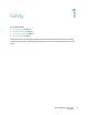 Safety Maintenance Safety • • • Do not attempt any maintenance procedure that is not described in the documentation supplied with your printer. Do not use aerosol cleaners. Clean with a dry, lint-free cloth only. Do not burn any consumables or routine maintenance items. For information on Xerox® supplies recycling programs, go to www.xerox.com/gwa.