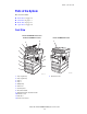 Parts of the System Parts of the System This section includes: ■ ■ ■ ■ Front View on page 1-2 Side View on page 1-3 Back View on page 1-3 Open View on page 1-4 Front View Phaser 8510MFP/D Product and All Phaser 8560MFP Products Phaser 8510MFP/N Product 9 8 1 7 6 5 4 10 3 11 2 12 1 8560-134 8560-001 1. Document cover 1. Tray 4 (optional) 2. Tray 3 (optional) 3. Tray 2 4. Tray 1 5. Output tray 6. Exit cover 7. Control panel 8. Document feeder 9. Duplex automatic document feeder 10.
