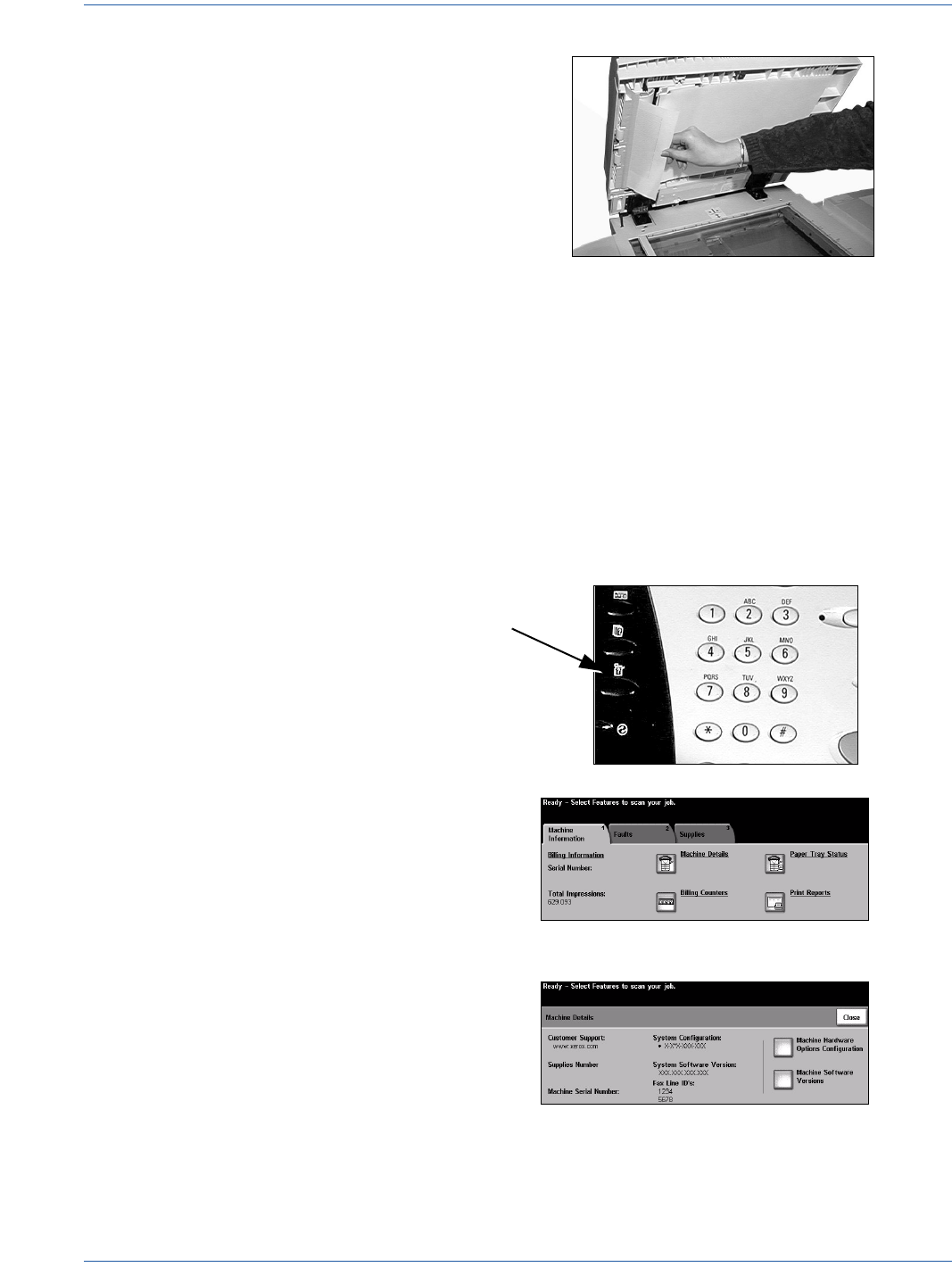 Machine Serial number, the fault code (if any) plus the name and location of your company.
