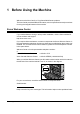 1 Before Using the Machine Maintenance Any operator product maintenance procedures will be described in the customer documentation supplied with the product. Do not carry out any maintenance procedures on this product which are not described in the customer documentation. Cleaning Your Product Before cleaning this product, unplug the product from the electrical outlet. Always use materials specified for this product.