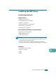 Installing the MFP Driver System Requirements Supported OS • Redhat 7.1 and above • Linux Mandrake 8.0 and above • SuSE 7.1 and above • Caldera OpenLinux 3.1 and above • Turbo Linux 7.0 and above • Slackware 8.1 and above Recommended Hardware Requirements • Pentium IV 1 GHz or higher • RAM 256 MB or higher • HDD 1 GB or higher NOTES: • It’s also necessary to claim swap partition of 300 MB or larger for working with large scanned images. • The Linux scanner driver supports the optical resolution at maximum.