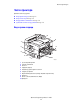 Части принтера Части принтера Данная глава содержит: ■ ■ ■ ■ Вид-справа спереди на стр. 1-2 Вид-слева сзади на стр. 1-3 Внутренние компоненты на стр. 1-4 Дополнительное оборудование на стр. 1-5 Вид-справа спереди 6 7 8 1 9 2 3 4 10 5 7400-001 1. Ручка верхней крышки 2. Панель управления 3. Лоток 2 4. Передняя дверца 5. Индикатор уровня бумаги в лотке 2 6. Поддон для бумаги 7. Верхний выходной лоток (вывод лицевой стороной вниз) 8. Дверца A 9. Лоток 1 (многоцелевой лоток, МЦЛ) 10.
