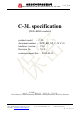 深圳市芯中芯科技有限公司 SHENZHENSHI XINZHONGXIN TECHNOLOGY CO., LTD. 1 C-3L_V1.0 Summary C-3L is integrated with WIFI&,ARM9 32-bit MCU core,120MHz master frequency, 256Kbram built-in, Bluetooth BLE dual-mode module, C-chip CC8000_QFN32-- integrated MCU/WLAN MAC/ Baseband/RF integrated single-chip solution。 Support 802.11b /g/n WiFi standard. • Support 802.11b/g/n standard, HT-20 • Supports Station, Soft AP, Station+Soft AP Maximum transmission rate of 72.