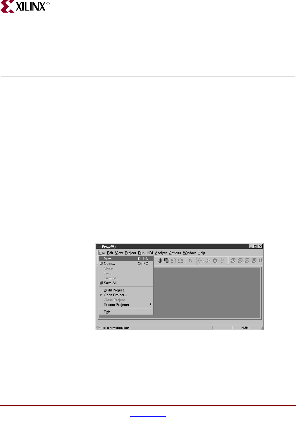 1. Start Synplify and choose File > New, or click the new file icon on the toolbar. The New