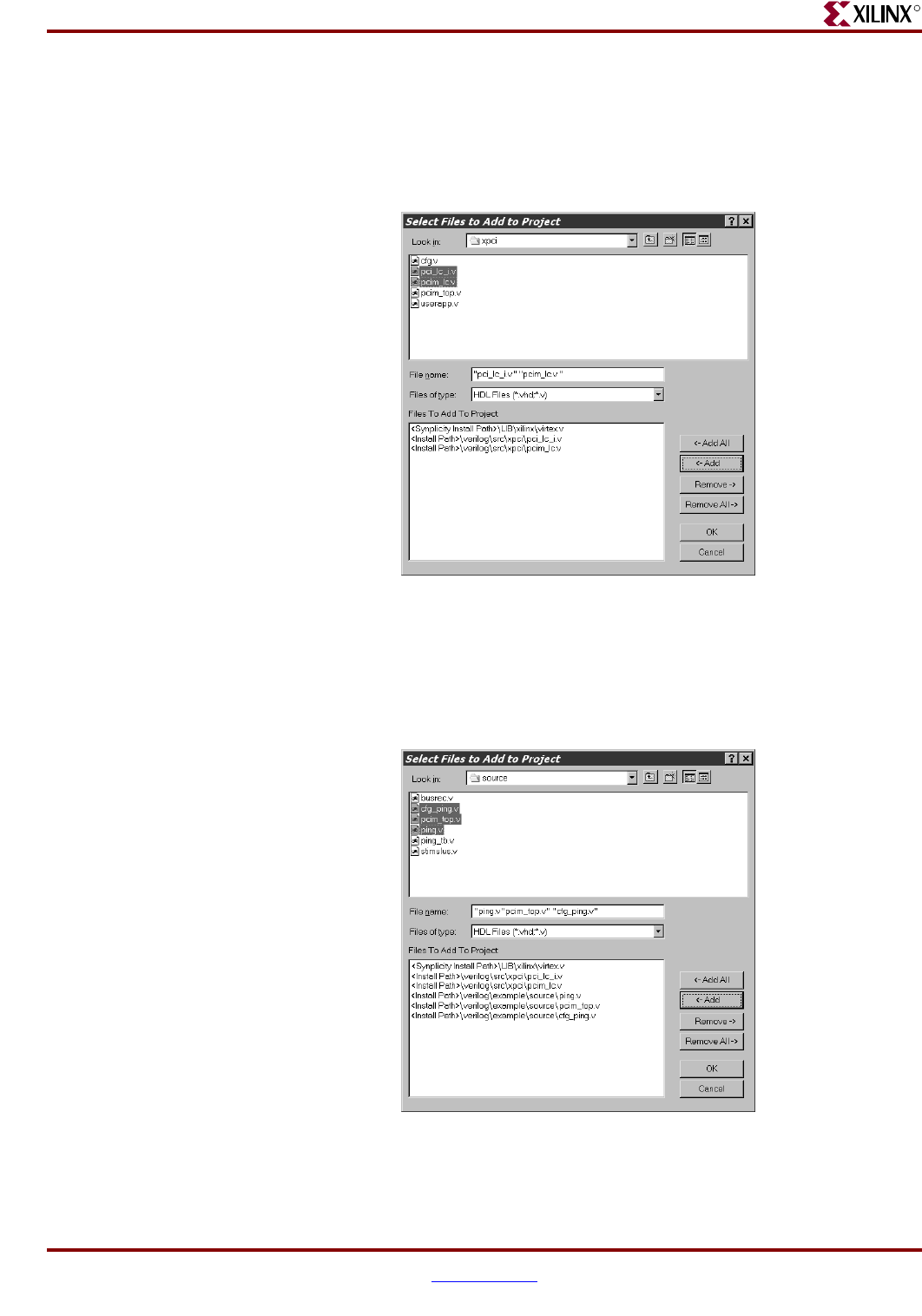 (pci_lc_i.v and pcim_lc.v), and click Add to move these files into the Files To Add list.