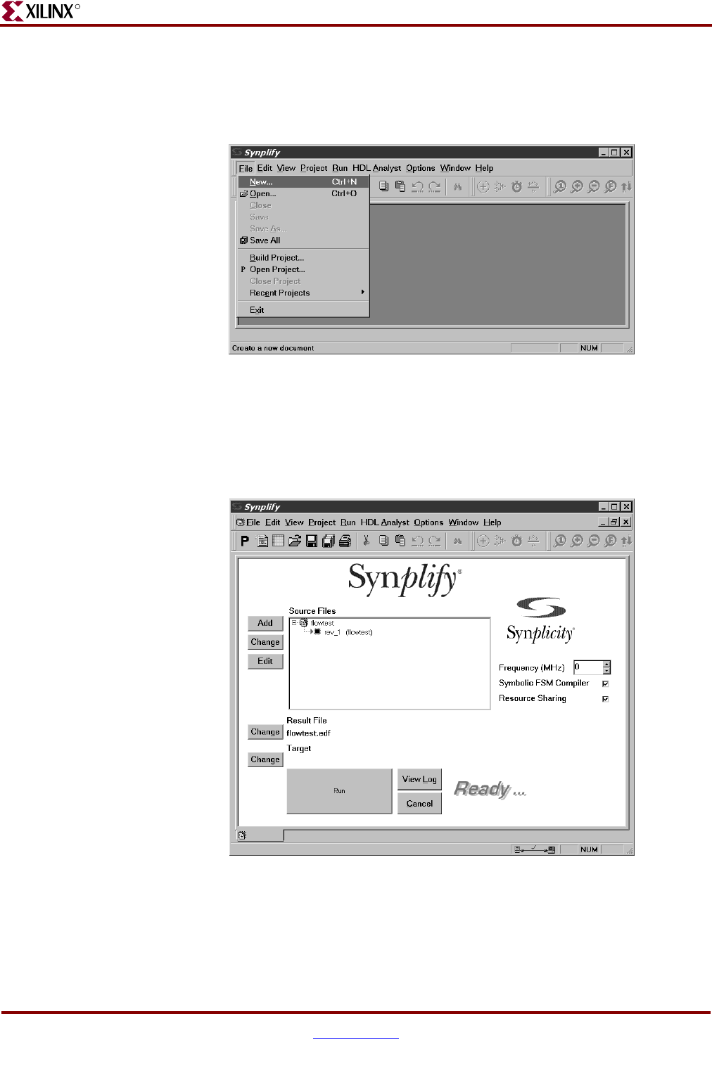 1. Start Synplify and choose File > New, or use the new file icon on the toolbar. The New