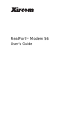 1-2 RealPort Modem 56 User’s Guide Hardware Installation Package Contents • • • • Xircom RealPort Modem 56 (Model RM56V1) RJ-11 telephone line cord User’s Guide and Quick Installation Card Software and online documentation on 3.5-inch diskette Other Requirements • For modem operations: an analog telephone line, RJ-11 modular telephone cable (supplied), and if needed, RJ-11 adapter for the local telephone system. Communications software is required for modem and fax operations.