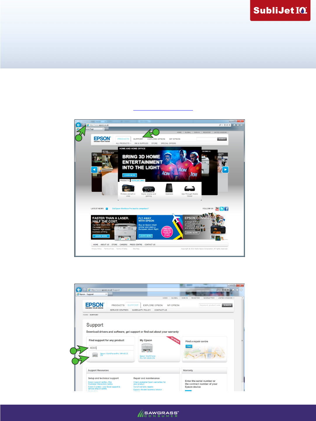 1.) Access the Epson website by entering http://www.epson.co.uk in the address ξeld of your web browser then