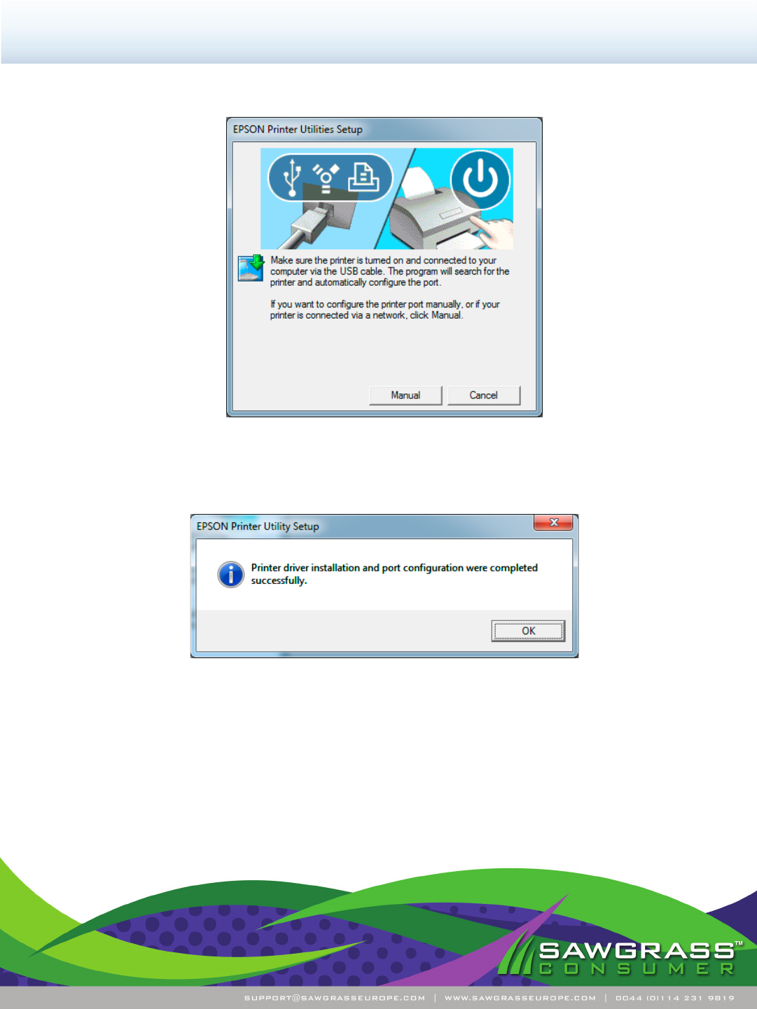 Congratulations! The Epson printer driver installation is complete. Please proceed to the WinProle Installa-