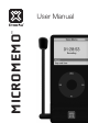 “Memory is imagination pinned down.” Mason Cooley Setup & Recording 1. Attach MicroMemo to the bottom of a recording-capable iPod. 2. This will automatically switch the iPod into Voice Memos mode. Once in Voice Memos mode, all recording and playback is controlled using the iPod’s Click Wheel. Welcome Thank you for choosing the MicroMemo Digital Audio Recorder. MicroMemo is perfect for recording audio anywhere you take your iPod.