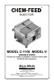 C-1100V Page 3 1.0 Introduction Congratulations on purchasing the C-1100 Model-V Variable speed positive displacement metering pump. The C-1100 is designed to inject chemicals into piping systems and is capable of injecting against a high system pressure up to 150 PSI (10.4 bar).