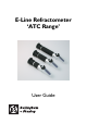 E-Line Refractometer ‘ATC Range’ User Guide (Eng) B+S Code : 44-891 Issue 1F July 2011 Order Code 44-801 44-802 44-803 44-804 44-805 44-808 44-809 44-812 44-817 44-818 44-819 44-820 44-821 44-822 44-823 44-825 44-828 44-829 Range 0-10 °Brix 0-18 °Brix 0-32 °Brix 28-62 °Brix 45-82 °Brix 0-100 ‰ Saline 1.000-1.