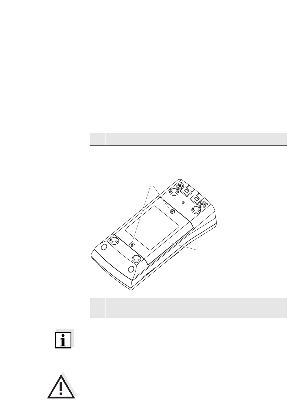1 Unscrew the two screws (1) on the underside of the meter.
