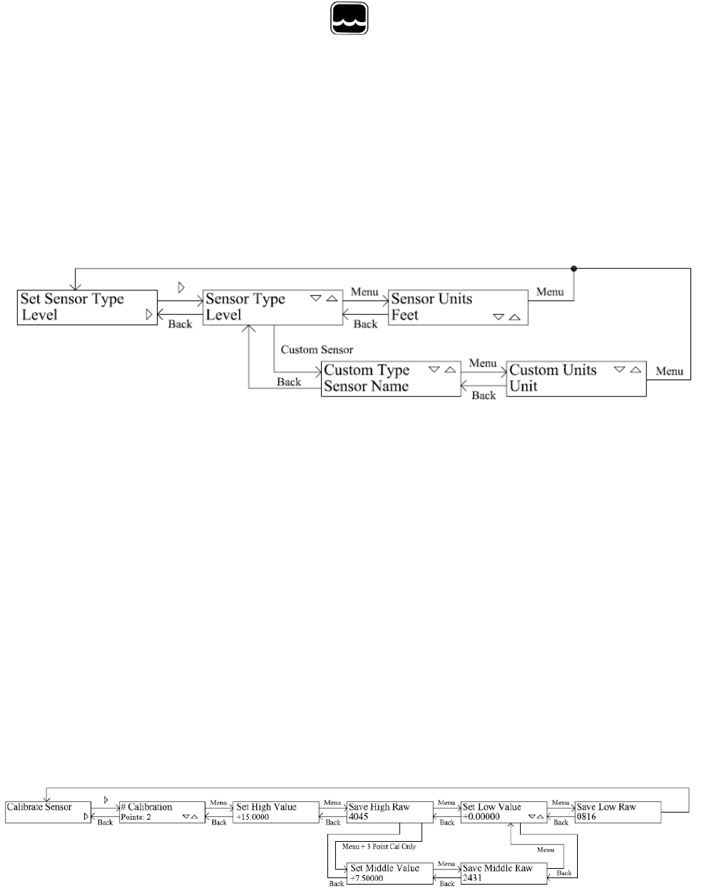 button to enter any of the setup sub-menus. These sub-menus are Set Sensor Type,
