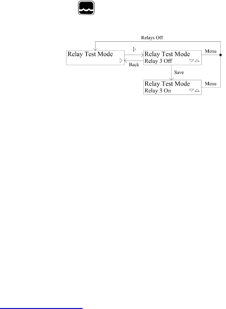 Display or Back to exit test mode, the relays will turn off upon exit.