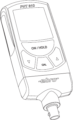 English Français Overview Aperçu The PHT 810 can be used to measure the pH value of a liquid. Grâce au PHT 810, vous pouvez mesurer le pH d’un liquide. Various sensors are available for different applications. Il existe différents capteurs afin de s’adapter aux différentes applications. Device components: Eléments de l’appareil: 1 ........... Display (LCD) 2 ........... ON/HOLD key (on / off / store displayed measured value) 1 ........... Ecran (LCD) 2 ...........