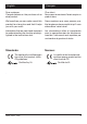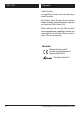 English Français Cleaning and care Nettoyage et entretien Clean the device with a damp cloth. Nettoyez l’appareil avec un tissu humide. Do not use any solvents, e.g. acetone, since they attack synthetic materials. N’utilisez pas de solvant comme p. ex. d’acétone, puisque cela attaque la matière plastique. Disposal Traitement des déchets Should the device become unusable, you must dispose of it in a professional and environmentally sound manner.