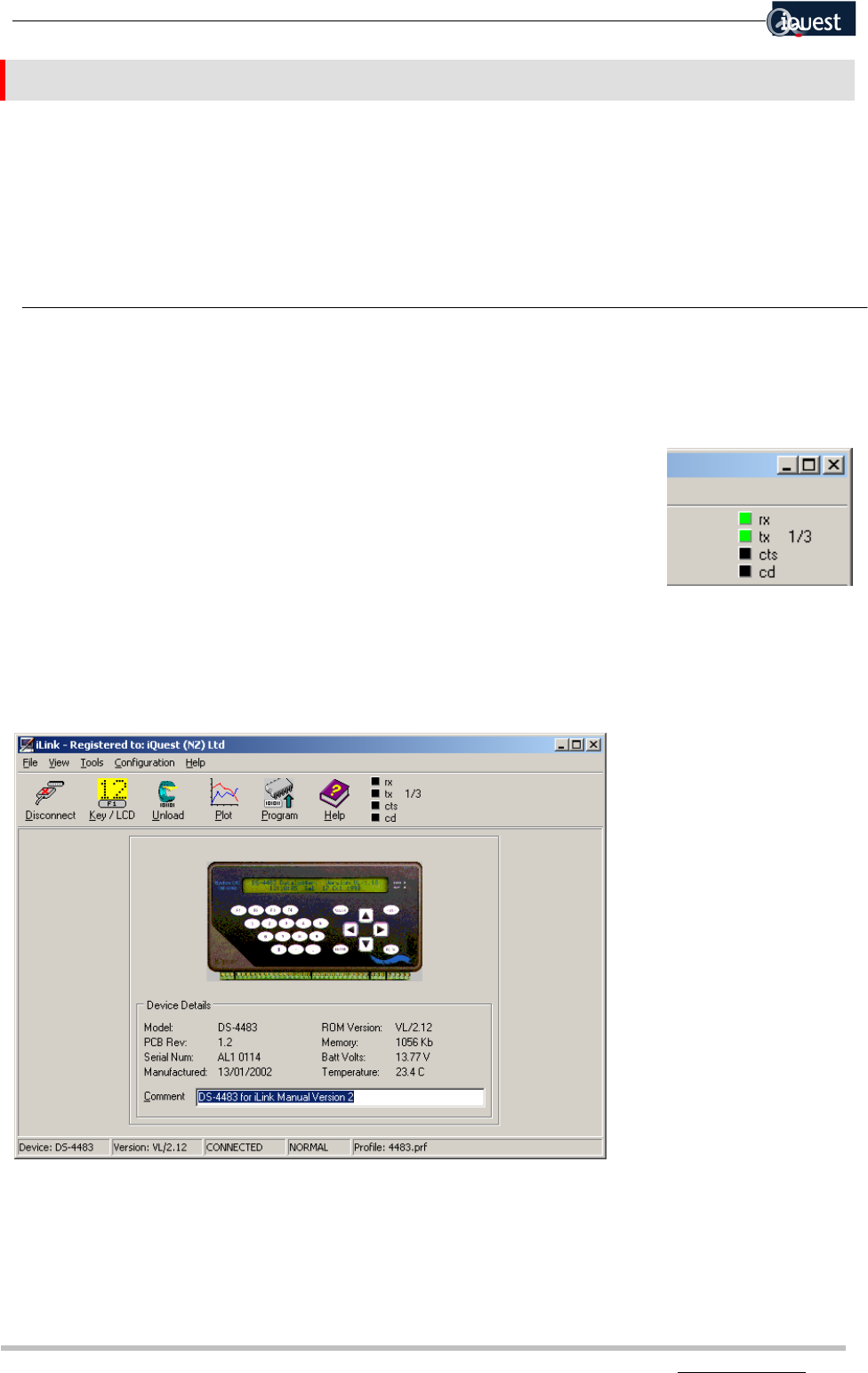 together with the device information. This window is always displayed whilst iLink is connected to the