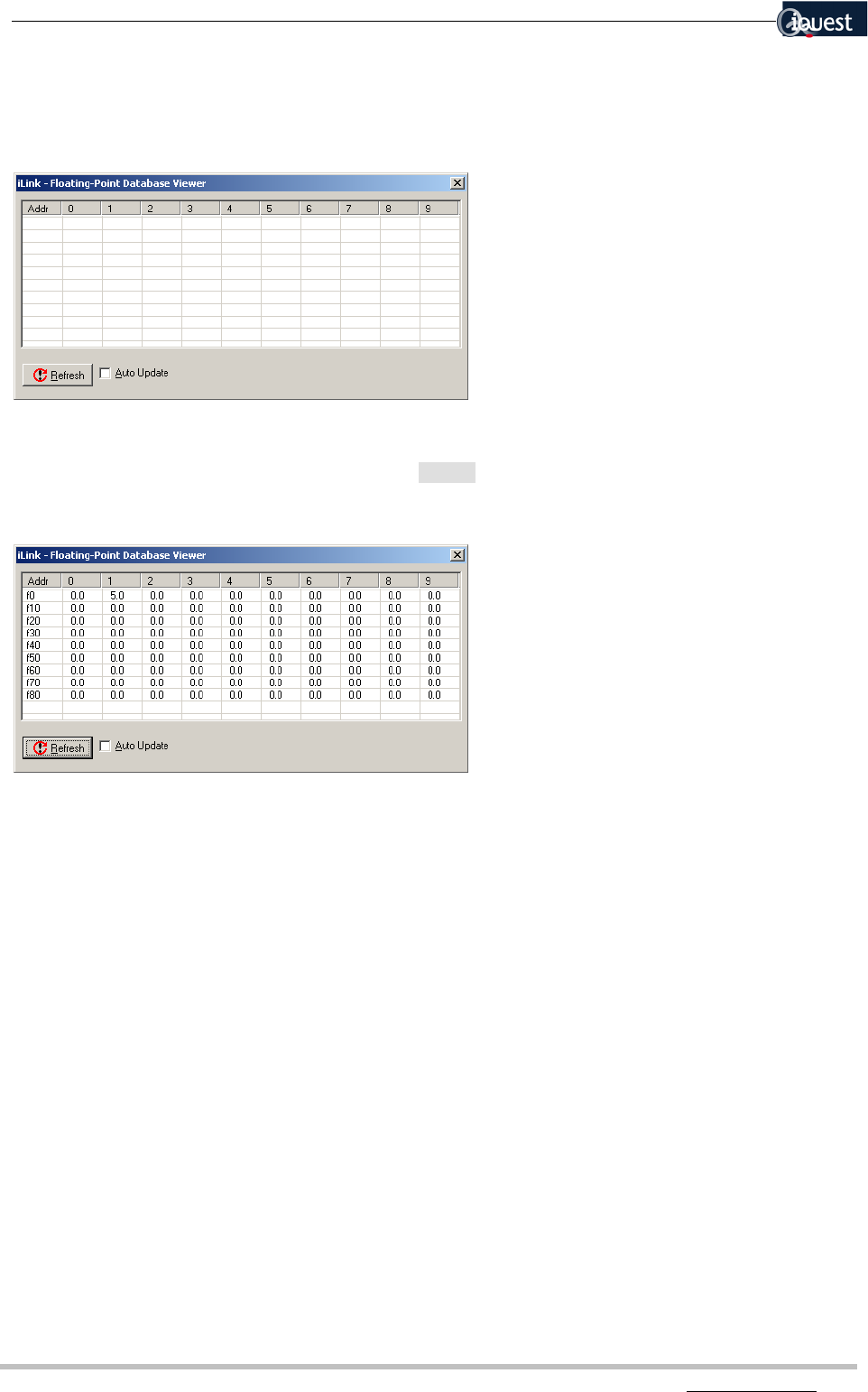 This view can be used to display the values stored in the floating-point database of the connected device.