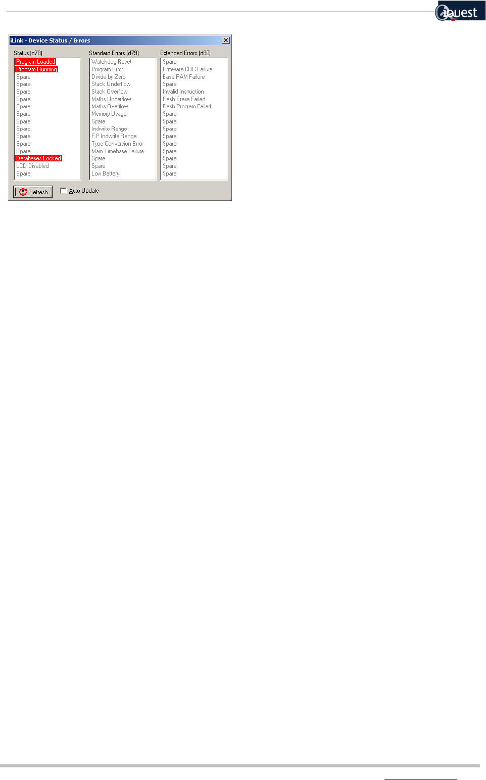 Clicking this button will clear all the error flags. This is achieved by writing zeroes into addresses d79 and