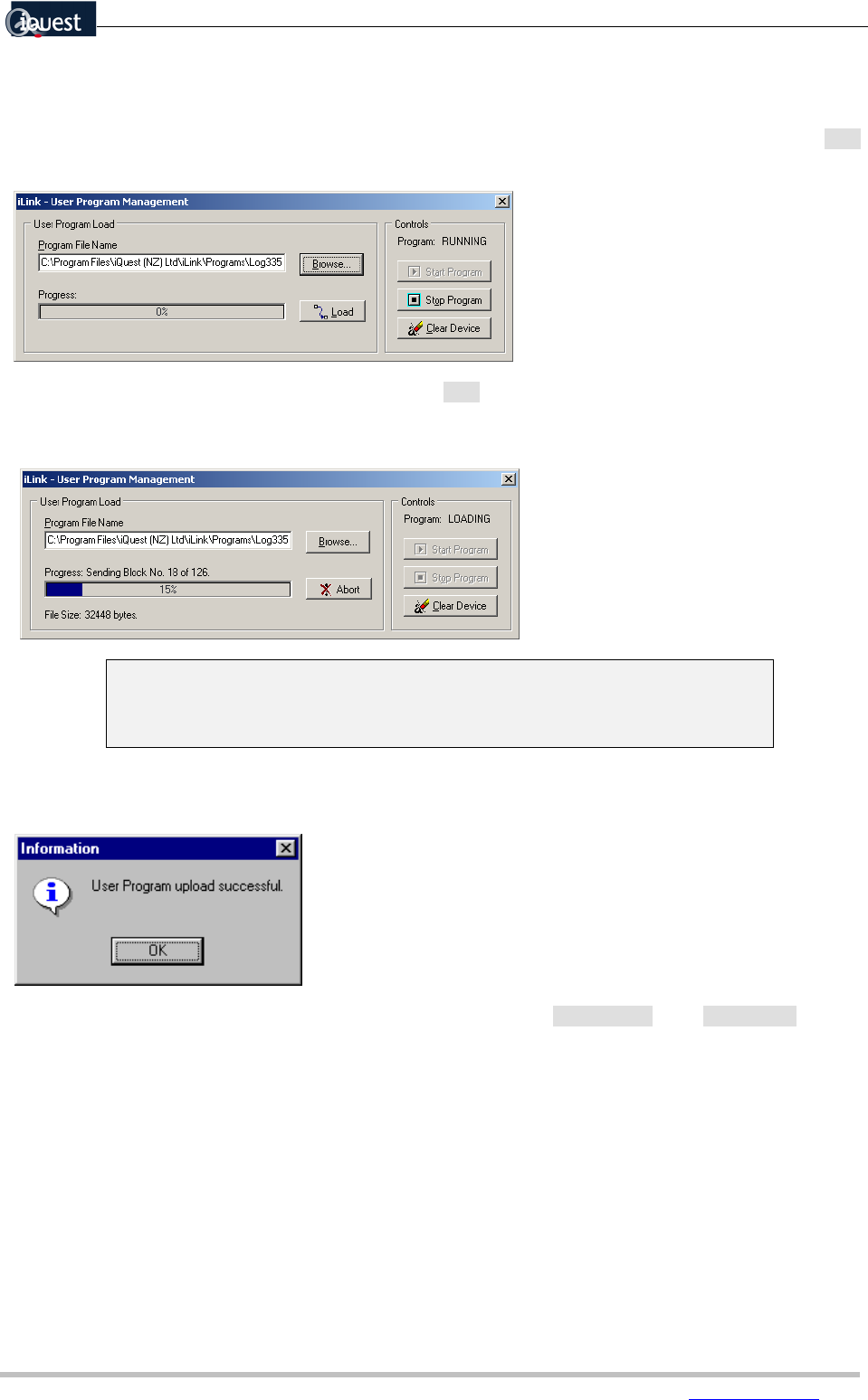 A message will be displayed when the program has been successfully loaded into the datalogger.