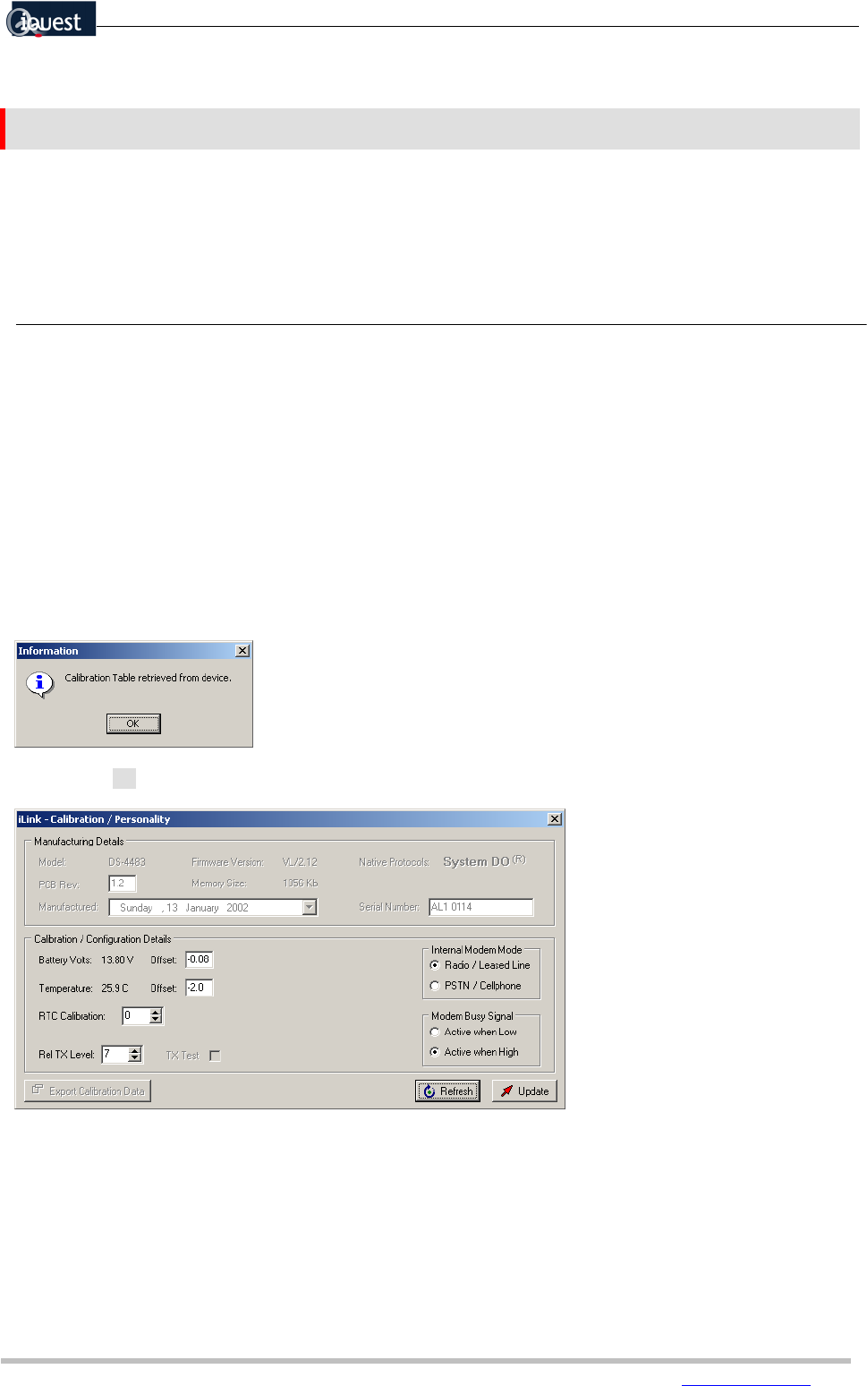 When the Calibration Configuration is selected, iLink attempts to communicate with the connected device