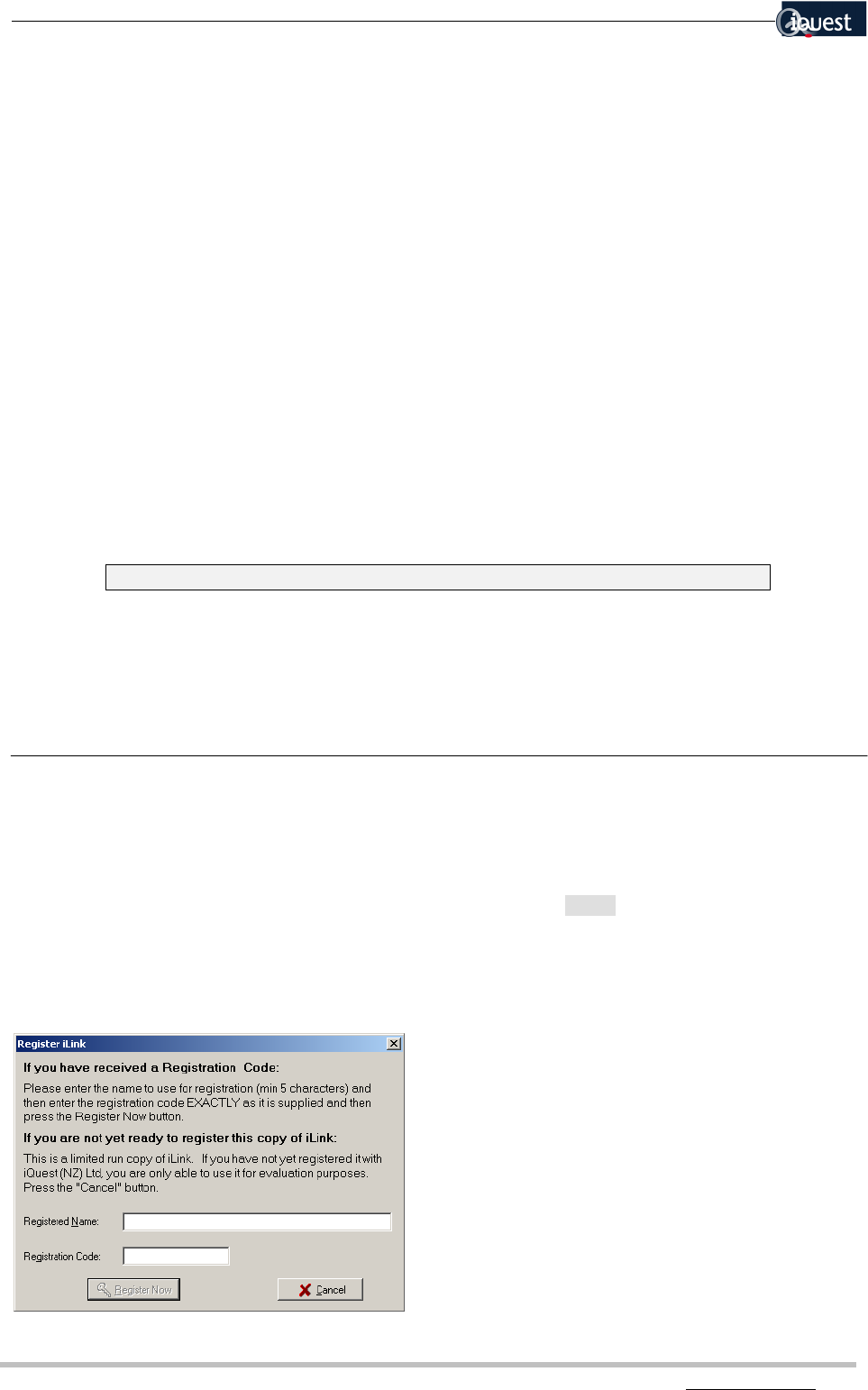 When iLink is run for the first time, you will be prompted to enter your registration details and register the