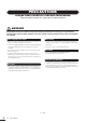 PRECAUTIONS PLEASE READ CAREFULLY BEFORE PROCEEDING * Please keep this manual in a safe place for future reference. WARNING Always follow the basic precautions listed below to avoid the possibility of serious injury or even death from electrical shock, short-circuiting, damages, fire or other hazards. These precautions include, but are not limited to, the following: Power supply/AC power adaptor Water warning • Only use the voltage specified as correct for the instrument.