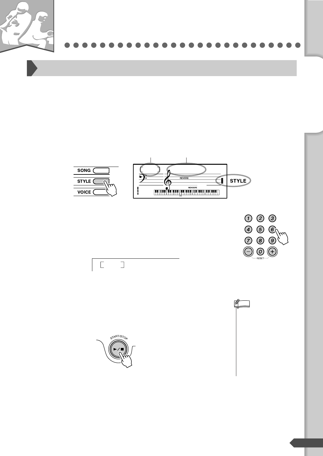 Select the desired Style by using the number buttons [0]-[9], [+],