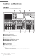 Controls and functions Front Panel 3 TALKBACK jack 1 2 3 A balanced XLR-3-31 jack to which a talkback mic can be connected. You can make settings in the screen to supply +48V phantom power to this jack. This jack sends instructions from the mixer operator to the desired output channel. 4 1 PHONES LEVEL knob 4 TALKBACK LEVEL knob Adjusts the level of the signal output from the PHONES Out jack. Adjusts the input level of the mic connected to the TALKBACK jack.