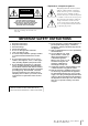 • Explanation of Graphical Symbols CAUTION RISK OF ELECTRIC SHOCK DO NOT OPEN CAUTION: TO REDUCE THE RISK OF ELECTRIC SHOCK, DO NOT REMOVE COVER (OR BACK). NO USER-SERVICEABLE PARTS INSIDE. REFER SERVICING TO QUALIFIED SERVICE PERSONNEL. The lightning flash with arrowhead symbol within an equilateral triangle is intended to alert the user to the presence of uninsulated “dangerous voltage” within the product’s enclosure that may be of sufficient magnitude to constitute a risk of electric shock to persons.