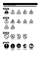 Cautions in Using with Safety Table of Illustrated Symbols Warning Warning, generally Warning, high voltage Warning, high temperature Warning, drive train Warning, explosive Caution, generally Caution, electrical shock Caution, scald Caution, no road heating Caution, not to drench Caution, water only Caution, deadly poison Prohibit, inflammable Prohibit, to disassemble Prohibit, to touch Compulsion, connect to the grounding terminal Compulsion, install on a flat surface Compulsion, discon