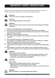 YF1800LR Manual de Instrucciones TABLA DE CONTENIDO Importantes instrucciones de seguridad 24 Función de seguridad 27 Lista de partes y diagrama 28 Instrucciones de montaje y operación 30 Montaje de máquina 30 Instrucción de operación 33 Cierre y almacenamiento 37 Limpieza y mantenimiento 38 Solución de problemas 40 Datos técnicos 44 Garantía 45 24