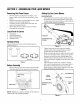 • Fasten the cable to the lower handle with the two cable ties found on the lower handle. Pull the cable ties tight and trim off the excess. See Figure 5. Bag Cable Tie Lower Handle Figure 5 Nuts Figure 7 Attaching StarterRope NOTE: Make certain the drive cable is routed around the outside and above the lower handle so it does not interfere with attaching the grass bag. • Lift chute door on the grass bag adapter and slide grass bag onto the adapter. See Figure 8.