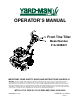 OPERATOR’S MANUAL Front Tine Tiller Model Number 21A-392B401 IMPORTANT: READ SAFETY RULES AND INSTRUCTIONS CAREFULLY Warning: This unit is equipped with an internal combustion engine and should not be used on or near any unimproved forestcovered, brush-covered or grass-covered land unless the engine’s exhaust system is equipped with a spark arrester meeting applicable local or state laws (if any). If a spark arrester is used, it should be maintained in effective working order by the operator.