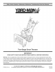 Safety • Set-Up • Operation • Adjustments • Maintenance • Troubleshooting • Parts Lists • Warranty Two-Stage Snow Thrower iMPORTANT READ SAFETY RULES AND iNSTRUCTiONS CAREFULLY BEFORE OPERATION Warning: This unit is equippedwithan internalcombustionengineand shouldnot be usedon or nearany unimprovedforest-covered,brushcoveredor grass-coveredland unlesstheengine'sexhaustsystemis equippedwith a sparkarrestermeetingapplicablelocalor statelaws(if any).