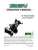 OPERATOR’S MANUAL 33” Snow Thrower Model 31AE993I401 IMPORTANT: READ SAFETY RULES AND INSTRUCTIONS CAREFULLY Warning: This unit is equipped with an internal combustion engine and should not be used on or near any unimproved forestcovered, brush-covered or grass-covered land unless the engine’s exhaust system is equipped with a spark arrester meeting applicable local or state laws (if any). If a spark arrester is used, it should be maintained in effective working order by the operator.
