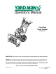 Operator’s Manual Two-Stage Snow Thrower Model 5KL IMPORTANT: Read safety rules and instructions carefully before operating equipment. Warning: This unit is equipped with an internal combustion engine and should not be used on or near any unimproved forestcovered, brush-covered or grass-covered land unless the engine’s exhaust system is equipped with a spark arrester meeting applicable local or state laws (if any).