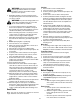 4. While standing in the operator’s position (behind the snow thrower) engage the auger. 5. Allow the auger to remain engaged for approximately ten (10) seconds before releasing the auger control. Repeat this several times. 6. With the engine running in the FAST position and the auger control in the disengaged “up” position, walk to the front of the machine. 7. Confirm that the auger has completely stopped rotating and shows NO signs of motion. 7.