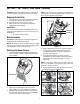 A Belt Cover Self-Tapping Screw Self-Tapping Screw Auger Pulley Shoulder Screw B Spring Mounting Bracket Engine Pulley Drive Belt Figure 15 4. Wrap auger belt around the auger pulley. See Figure 15. 5. Re-insert shoulder screw into the mounting bracket and tighten to secure. 6. Wrap auger belt behind the idler. Reattach the spring to the bolt where it was earlier secured. 7. Re-install frame cover and flip the snow thrower back to the operating position. 8. Wrap auger belt around the engine pulley.