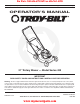 For Parts Call 606-678-9623 or 606-561-4983 Safety • Assembly • Operation • Tips & Techniques • Maintenance • Troubleshooting • Parts Lists • Warranty OPERATOR’S MANUAL 21” Rotary Mower — Model Series 420 IMPORTANT READ SAFETY RULES AND INSTRUCTIONS CAREFULLY BEFORE OPERATION Warning: This unit is equipped with an internal combustion engine and should not be used on or near any unimproved forest-covered, brushcovered or grass-covered land unless the engine’s exhaust system is equipped with a spark arreste