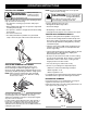 NORMAS PARA UNA OPERACION SEGURA • Mezcle y cargue el combustible en un área exterior bien ventilada donde no haya chispas ni llamas. Quite lentamente la tapa del combustible sólo después de apagar el motor. No fume mientras carga o mezcla el combustible. Limpie de inmediato todo el combustible que se haya derramado. • Evite crear una fuente de encendido por combustible derramado. No arranque el motor hasta que se hayan disipado los vapores del combustible. • Aleje la unidad a por lo menos 30 pies (9.1 m.