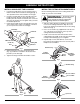 ASSEMBLY INSTRUCTIONS INSTALL AND ADJUST THE D-HANDLE INSTALL THE CUTTING ATTACHMENT SHIELD 1. Push the D-handle down onto the shaft housing so that the handle slants towards the shaft grip (Fig. 1). The squared bolt hole in the handle is to the right. 2. Insert the shoulder bolt into the squared hole in the handle and push through. On the left side of the handle, place the washer on the bolt, then screw the wing nut onto the bolt. Do not tighten until you make the handle adjustment. 3.