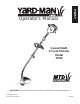 English Operator’s Manual Curved Shaft, 2-Cycle Trimmer Model YM25 IMPORTANT: Read safety rules and instructions carefully before operating equipment. PRINTED IN U.S.A. PART NO.