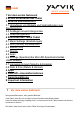 Inhalt SELECT LANGUAGE 1 Vor dem ersten Gebrauch 2 Erstes Einschalten des Tablet 3 Android Startbildschirm 3.1 Hinzufügen von Widgets und Verknüpfungen zum Startbildschirm 3.2 Festlegen eines Hintergrundes 3.3 Anwendungsmenü 4 Einrichten des Yarvik Tablet 4.1 Menü Settings (Einstellungen) 4.2 WiFi (WLAN) und Bluetooth 4.3 Sound (Ton) 4.4 Display 4.5 Apps 4.6 Storage (Speicher)/die MicroSD-Speicherkarte/das USB-Laufwerk 4.7 Language & input (Sprache & Eingabe) 4.