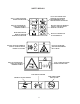 SAFETY DECALS SHUT OFF ENGINE AND REMOVE KEY BEFORE PERFOMORMING ANY MAINTENANCE OR REPAIR STAY A SAFE DISTANCE FROM THE MACHINE DO NOT OPEN OR REMOVE SAFETY SHIELDS WHILE ENGINE IS RUNING RISK OF SEVERING OF TOES OR FINGERS MOWER BLADES READ OPERATORS MANUAL BEFORE OPERATING MACHINE RISK OF THROWN OR FLYING OBJECTS DO NOT OPEN OR REMOVE SAFETY SHIELDS WHILE ENGINE IS RUNING RISK OF HAND AND ARM ENTANGLEMENT BELT DRIVE RISK OF SEVERING OF TOES OR FINGERS MOWER BLADES STAY A SAFE DISTANCE FROM THE